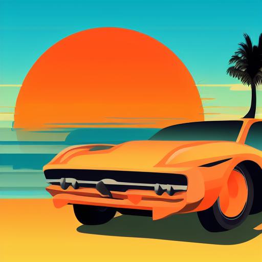 Orange car with palm trees in the background