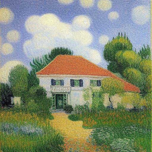 Firstly, the prompt starts by describing the scene that needs to be generated – “the impressionism painting of the house in a garden”. This sets the tone for the entire prompt, indicating that the generated image needs to be in the style of impressionism. Impressionism is a movement in art that is known for its emphasis on light and color, and is characterized by loose brushwork and visible brushstrokes.