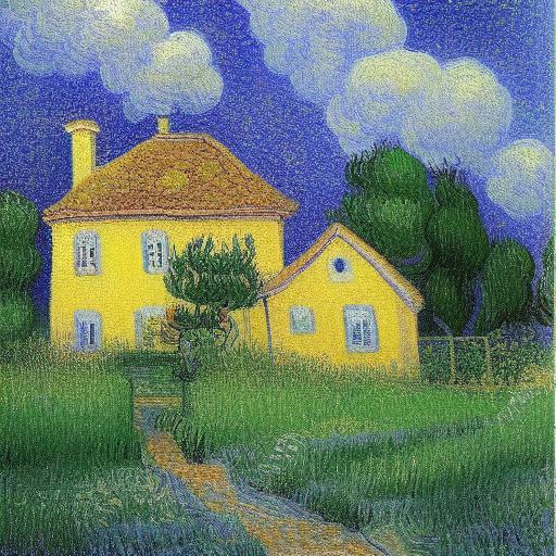 The painting of a house in the garden