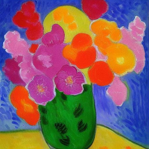 The painting of several pink flowers in a vase