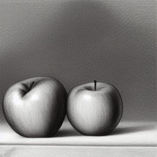 The pencil drawing of a vase and apples on a table