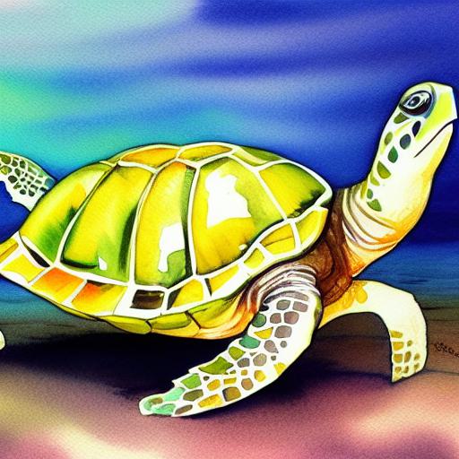 Watercolor color painting of one sea turtle