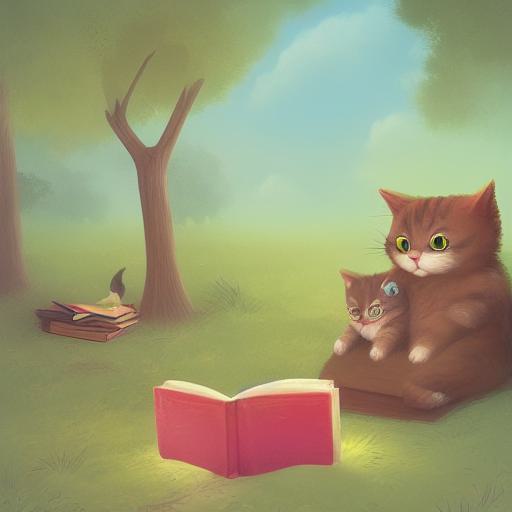 A cat with a book in the woods