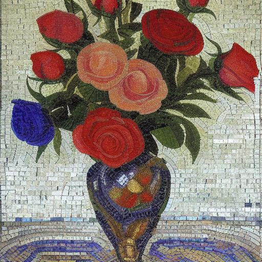 A mosaic of roses in vase inspired by Mikhail Vrubel