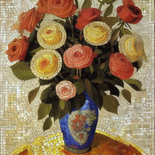 A mosaic of roses inside a vase inspired by Mikhail Vrubel