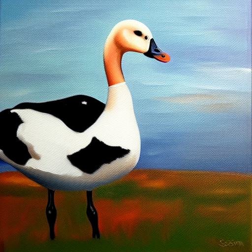 In summary, the AI image prompt “a painting of a goose, an acrylic painting by Linda Sutton, pixabay, fine art, oilpainting, cow, an expressive oil painting” contains various elements that can guide the AI in generating a unique and visually appealing image. Each part of the prompt, from the central subject of the goose to the specific artistic techniques referenced, can influence the AI’s approach to creating the image.