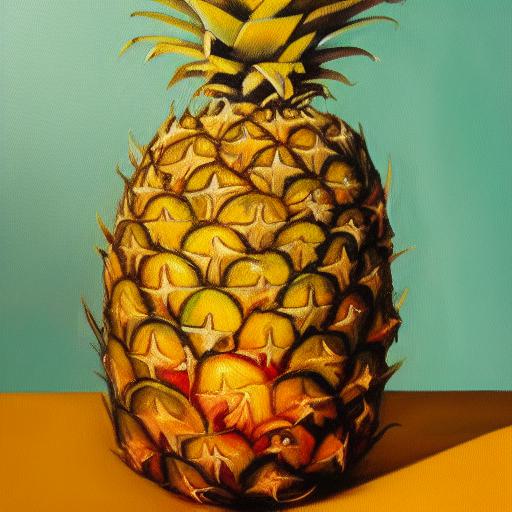 This AI image prompt features a painting of a pineapple created using acrylics. The image was inspired by the works of Carel Fabritius and was featured on the platform Artstation. The prompt also includes additional details such as the painting style, the medium, and other fruits like lemons painted on board.