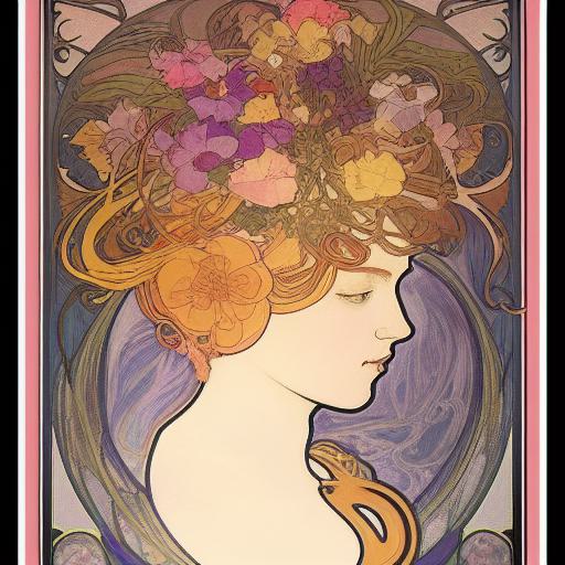 Step into the enchanting realm of AI-generated art, where the prompt serves as a guiding light to shape mesmerizing visual compositions. Let us delve into the prompt “a painting of a woman with a flower in her hair, evoking the essence of poster art inspired by Alphonse Mucha, drawing from the art nouveau movement and the distinctive style of Alphonse Mucha himself.”