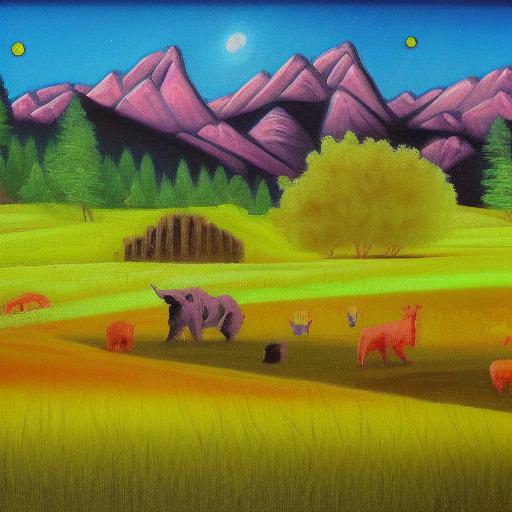 A painting of animals in a field