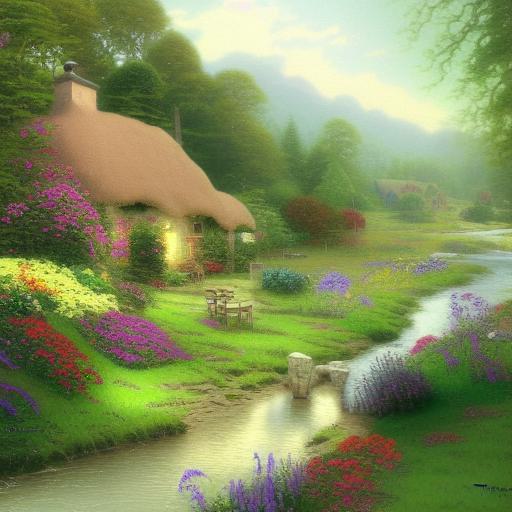 Overall, the individual parts of the prompt work together to provide a clear and detailed image for the AI algorithm to generate. The combination of natural elements like the river and flowers with the idyllic cottage setting and Kinkade’s unique style create a specific vision for the AI-generated image to follow.