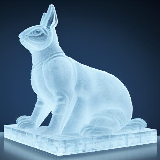 An ice sculpture of a rabbit sitting on a block of ice
