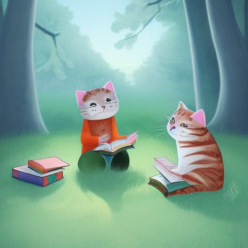 Cat reading book in the woods