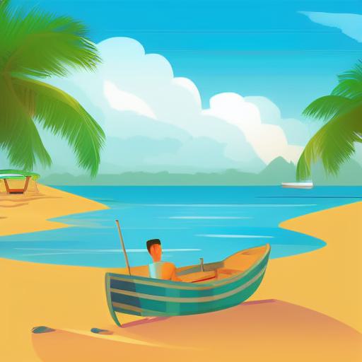 Man is sitting in a boat on the beach