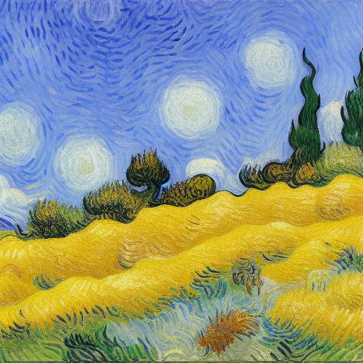 Painting of a wheatfield with different cypress trees