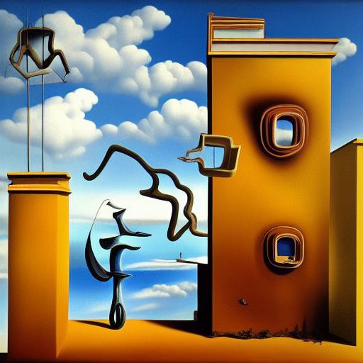 Painting on the side of a building with sculptures and sky
