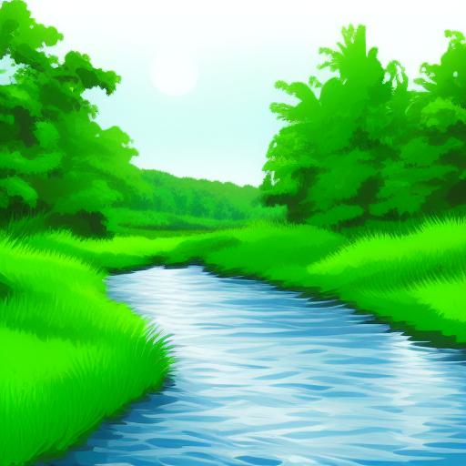 Small river running through a lush green field
