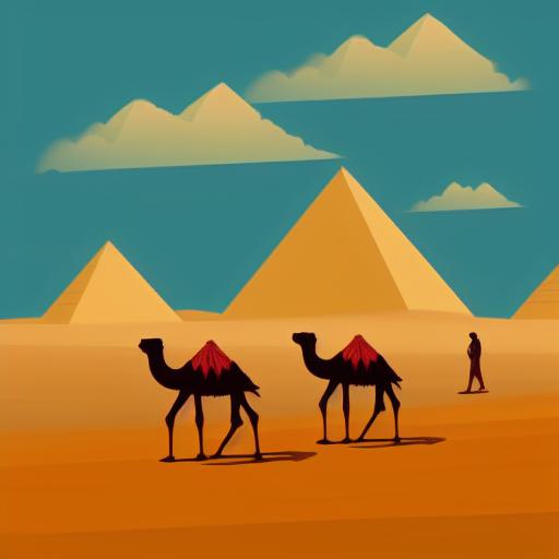 Some camels walking in a desert