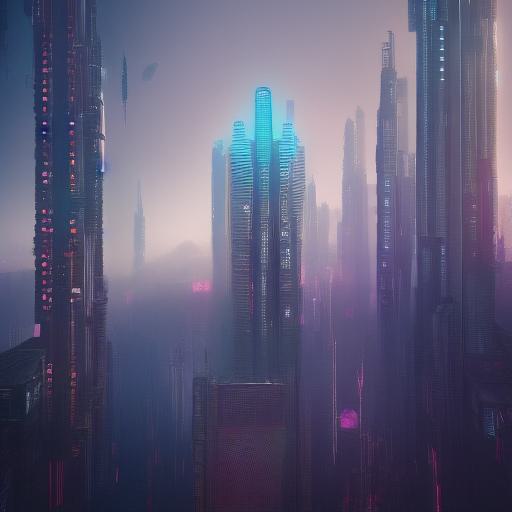 The digital city with lots of tall buildings