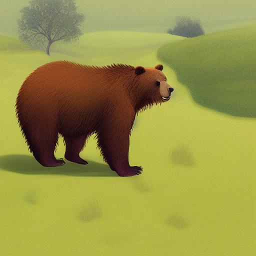 A brown bear in the lush green field