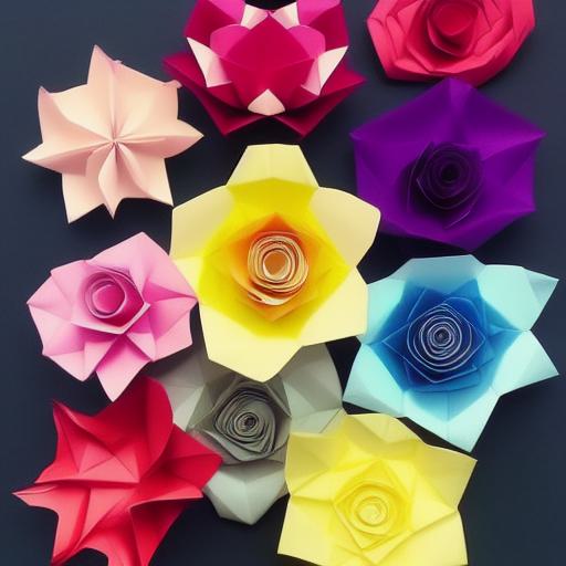 A bunch of different colors paper flowers