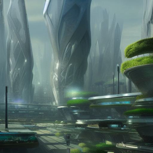 A futuristic city with trees