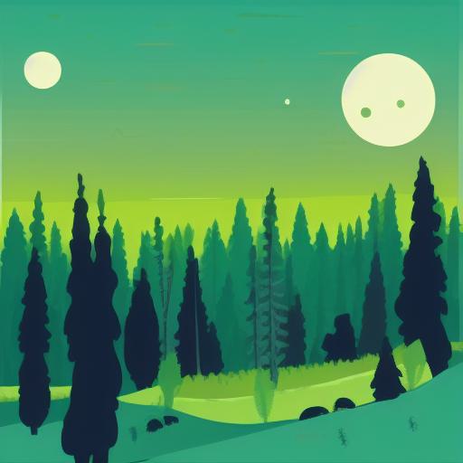 A green and black landscape with lots of trees