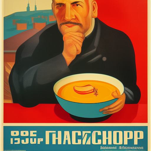 A man in front of a bowl of soup