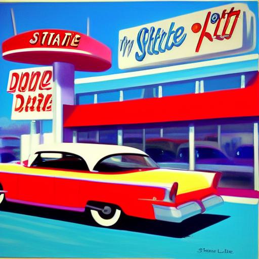A painting of a car parked in front of a starlite diner