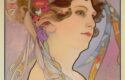 The combination of these elements will guide the AI in generating a stunning poster art painting featuring a woman with a ribbon in her hair, holding flowers, and paying homage to the distinctive style of Alphonse Mucha and the Art Nouveau movement.