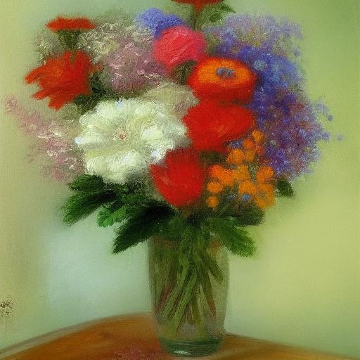 A painting of flowers in a vase on a table