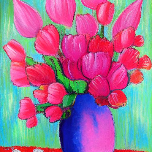 A painting of many pink flowers in a vase
