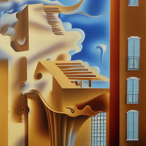 A painting on the side of a building in the sky
