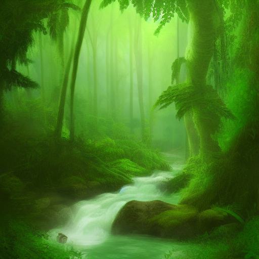 A stream running through a lush green forest