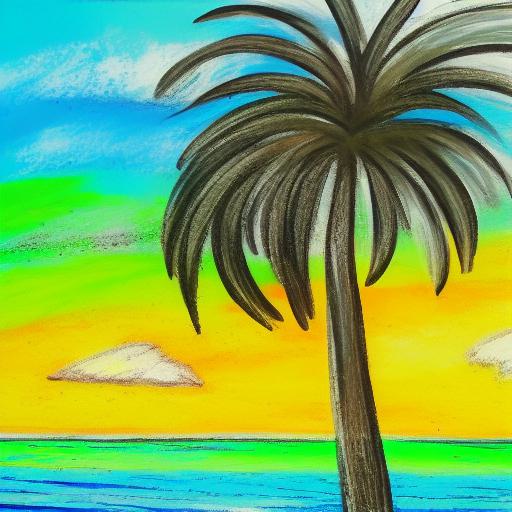 Painting of a palm tree at the beach