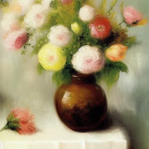 Painting of flowers in beautiful vase on the table