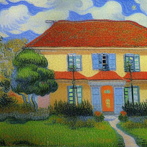 The impressionism painting of the house with a garden