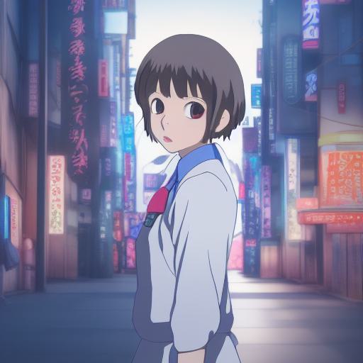 - “Girl standing in the middle of a busy street in Tokyo” provides context and setting for the image.