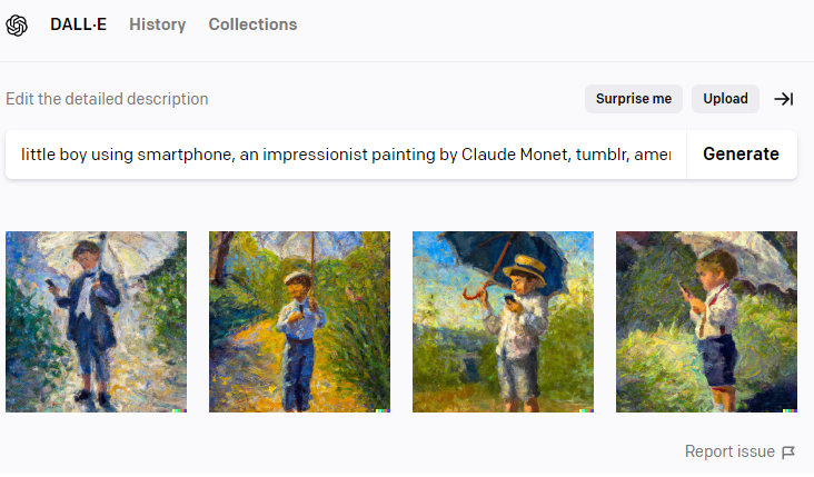 AI-generated images can also be used in art history classes to provide students with a new and unique perspective on art history. For example, an AI model could generate a series of images in the style of famous artists, allowing students to explore and learn about different artistic movements and styles. This is a new AI art generated with Claude Monet styling but with unexpected content such as “smartphone” that can inspire and catches attention from students!