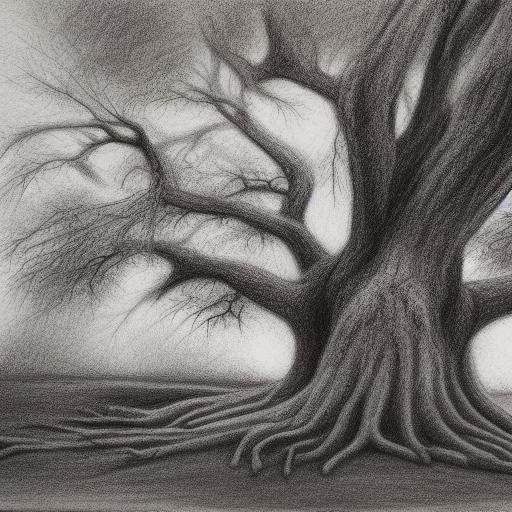 A black and white charcoal drawing of a tree