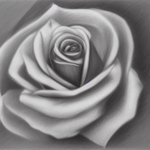 A black and white color charcoal drawing of a rose