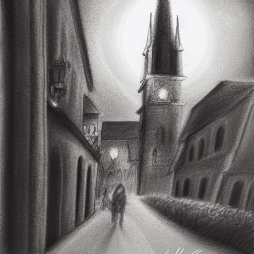In the above prompt, the key elements include a black and white drawing, a city and church at night, a full moon, many flowers, a charcoal drawing by László Paál, a modern European ink painting, atmospheric lighting, and a city scene. Each of these elements influences the image being generated in different ways. For example: