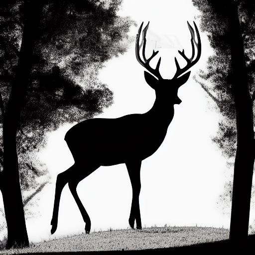 A black and white silhouette of a deer on the hill