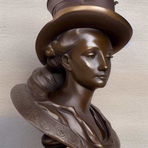 A bronze bust of a lady wearing a hat