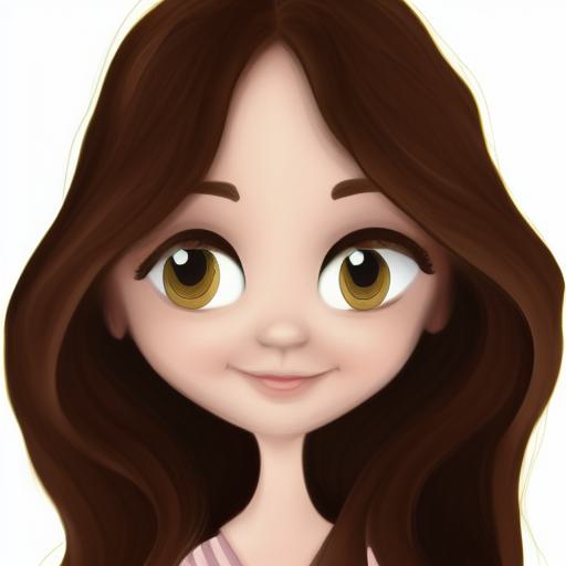 A cartoon girl with long brown hair and big eyes