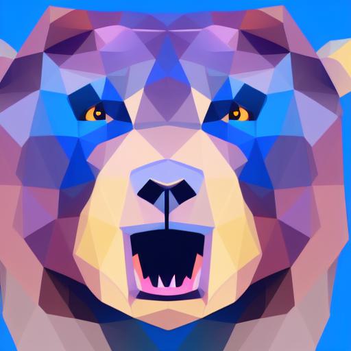 A close up of a bear face on a blue background