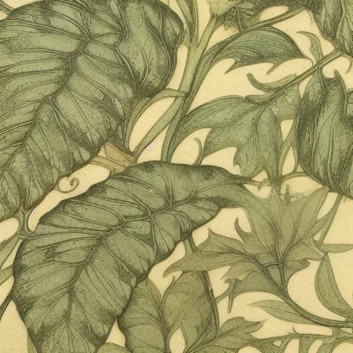This AI image prompt is focused on a close-up of a pattern of leaves, specifically a mid-nineteenth century engraving by William Morris. The prompt also mentions the Arts and Crafts movement and art nouveau, all of which are relevant to the style and inspiration for the image being generated:
