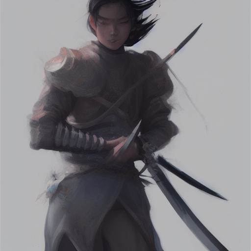 A close up of a person with a sword