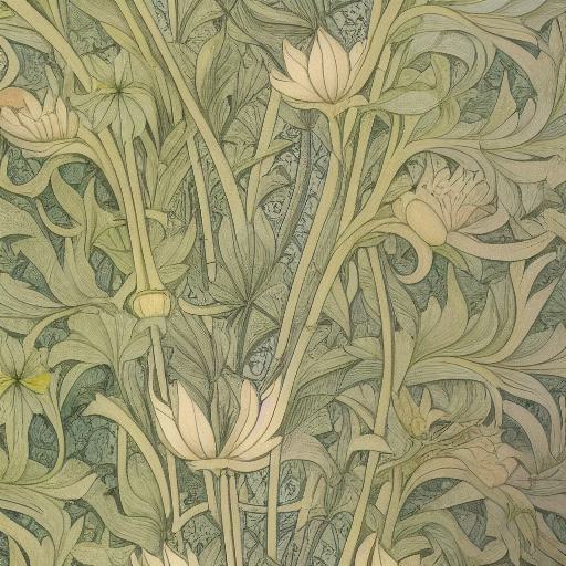 By combining these individual parts, the AI model can generate an image that incorporates a close-up of a wallpaper with lotus flowers, inspired by the style and designs of William Morris and the Arts and Crafts movement, and with an Art Nouveau aesthetic.