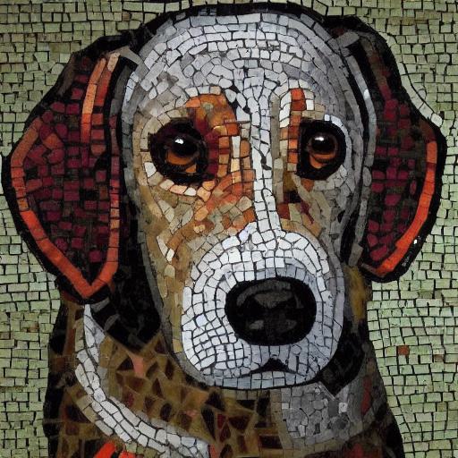 A close up of mosaic of a dog