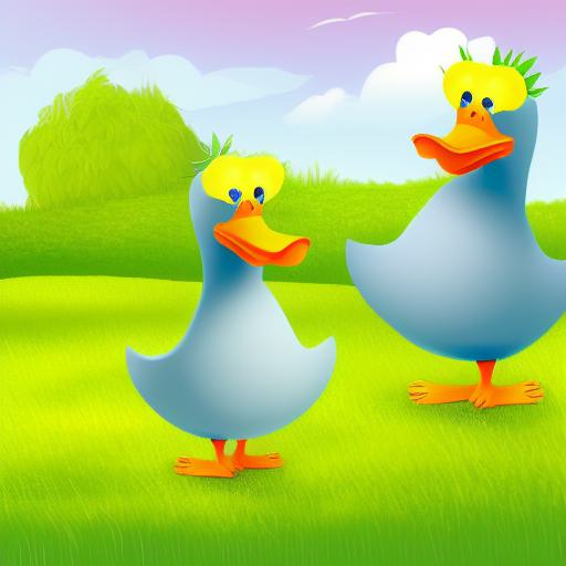 A couple of ducks standing on a lush green field